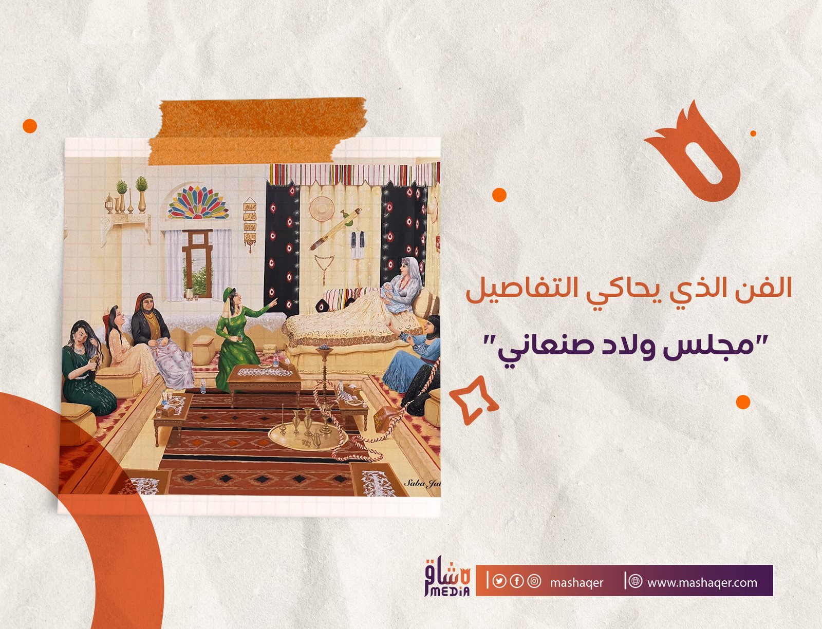 نشرت جلاس لوحتها “مجلس ولاد صنعاني “مؤخرا وحظيت بتفاعل كبير من قبل رواد السوشل ميديا وتناقلتها الكثير من المتابعات والصفحات لكونها لامست جزء عميق من تفاصيل وطقوس الولاد في محافظة صنعاء، والتي لا يكاد منزل يخلو منها.